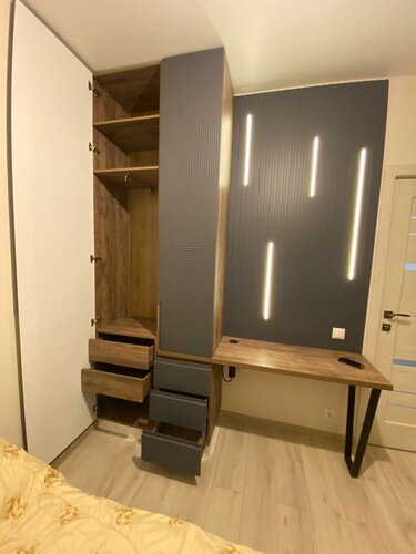 Перехал , заказал мебель в спальню. Делал на заказ,чтобы учесть размеры под мою планировку. Все мои пожелания учтены, работы выполнены в срок.